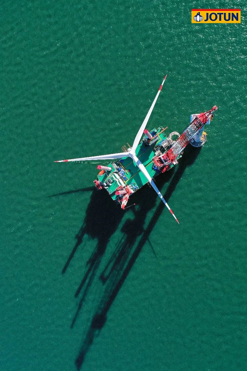 項目總投資102.86億元,規(guī)劃容量500兆瓦,水深范圍41-46米,離岸距離55公里。67臺海上風(fēng)機(jī)矗立在水深40多米的海里,風(fēng)機(jī)基礎(chǔ)結(jié)構(gòu)采用導(dǎo)管架形式,佐敦為整個項目的導(dǎo)管架涂裝提供了超過700,000升防腐涂料。